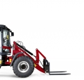 La chargeuse sur pneus V80 de est idéal pour les espaces restreints. La direction articulée offre une grande maniabilité grâce à son angle de braquage de 40 °. Votre godet ou fourche à palette peut approcher la charge en ligne droite, même à l’angle de braquage maximal, ce qui vous donne une grande souplesse dans les espaces restreints. La chargeuse est également très stable. L’essieu arrière oscillant maintient constamment les quatre roues en contact avec le sol. Seul l’essieu arrière oscille : le poids de la machine se déplace ainsi toujours dans la même direction que le godet.